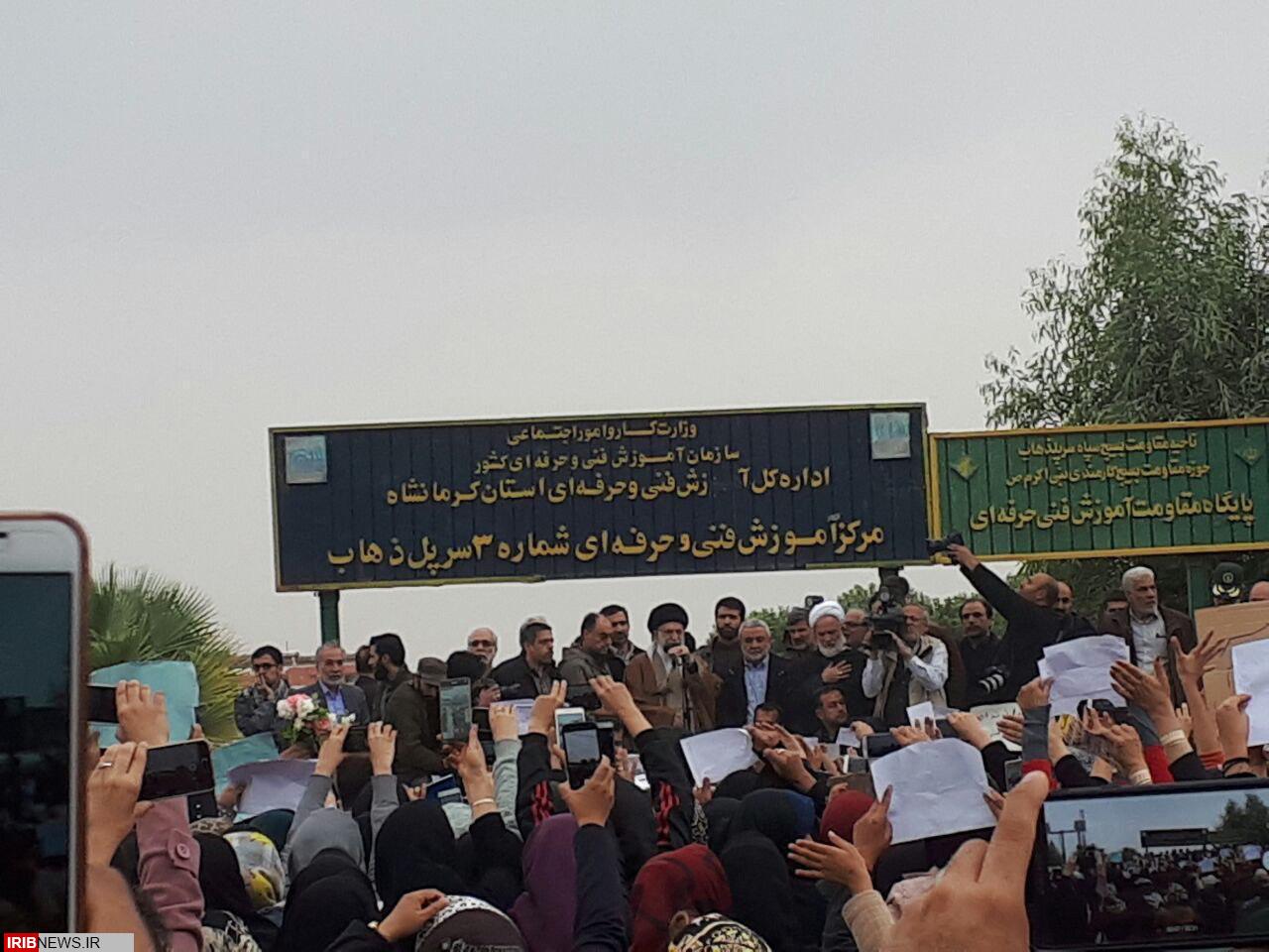 تصاویر حضور رهبر انقلاب در جمع مردم سرپل ذهاب