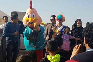 به گزارش خبرگزاری صدا و سیما به نقل از روابط عمومی جشنواره تئاترکودک همدان، عروسکگردانان این نمایش تلاش کردند با خواندن شعرهای محلی کودکان زلزله زده سرپل ذهاب را شاد کنند.