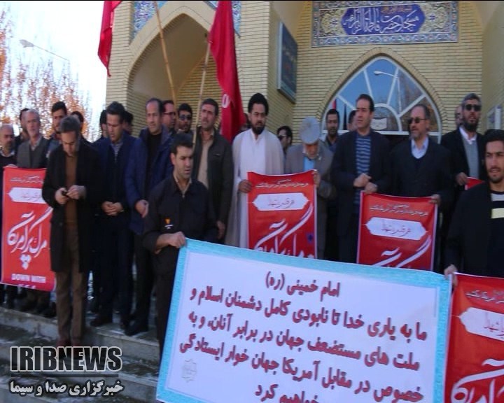 دانشجویان دانشگاه آزاد همدان در اعتراض به اقدام رییس جمهور آمریکا در انتقال سفارت ایالات متحده به بیت المقدس را محکوم کردند .