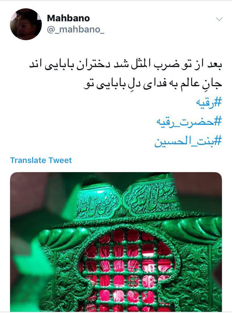 حضرت رقیه (س) دختر امام حسین (ع) در واقعه عاشورا سه سال سن داشتند که بعد از شهادت پدر و یارانش در عصر عاشورا، به همراه دیگر زنان بنیهاشم توسط سپاه یزید به اسیری رفتند و در خرابههای شام به شهادت رسیدند.