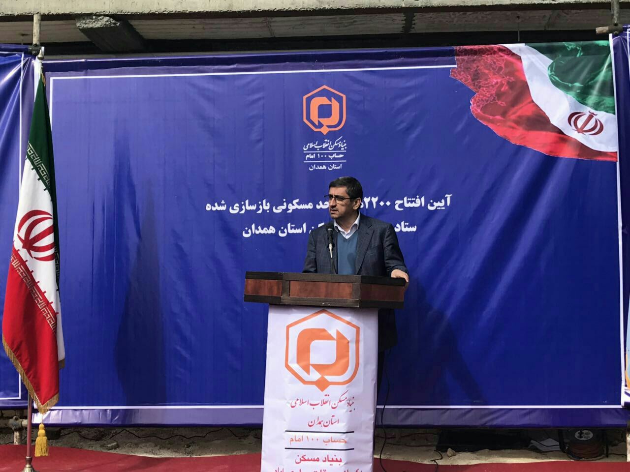 به گزارش خبرگزاری صداوسیما مرکز همدان ، مدیرکل بنیاد مسکن انقلاب اسلامی استان همدان گفت : استان همدان به عنوان معین بازسازی و تجهیز ۲۷۵۰ واحد را تقبل کرده است که تاکنون ۲۲۰۰ واحد به اتمام رسیده و مابقی هم تا عید نوروز ۹۸ به اتمام می رسد.