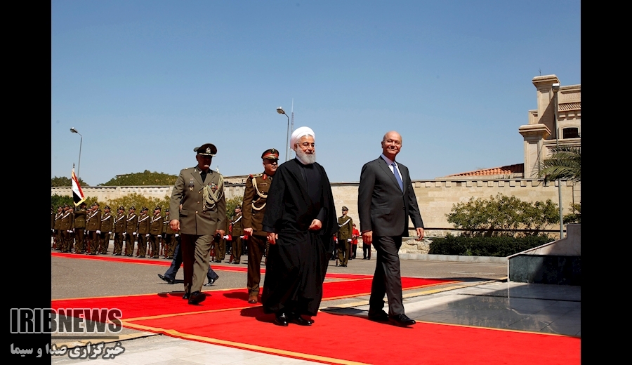 روحانی که صبح امروز در راس هیاتی وارد بغداد ، از دقایقی قبل مراسم استقبال رسمی از او با حضور برهم صالح همتای عراقی اش در کاخ ریاست جمهوری عراق برگزار شد.