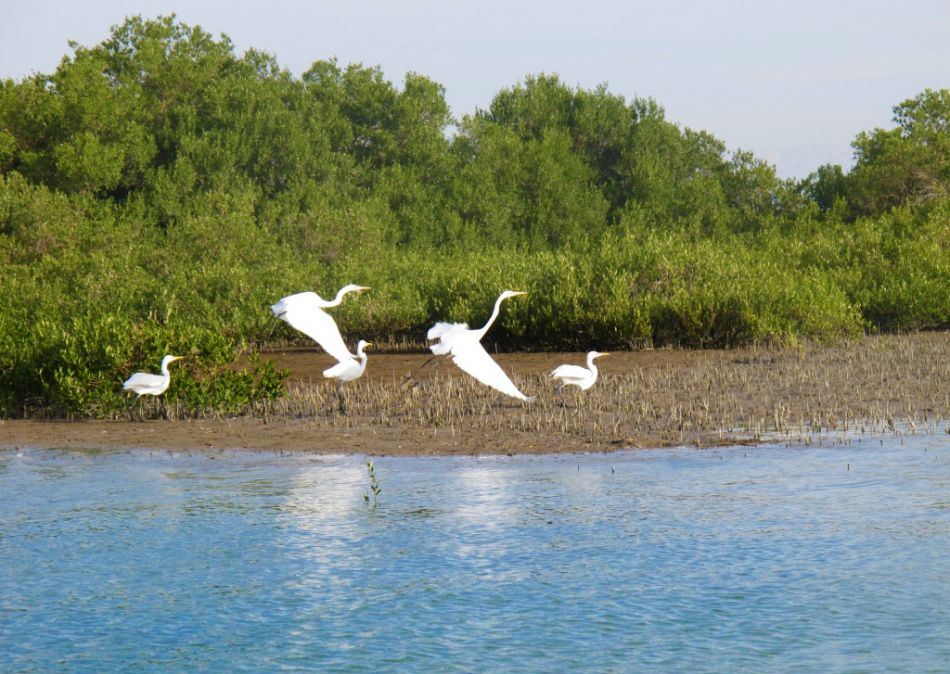 انواع مرغان دریایی با آن پاهای دراز و منقارهای نوک تیزشان، در میان درختان حرا خرامان خرامان راه میروند اینجا پناهگاهی برای پرندگانی است که از اروپا و آسیا به سوی آفریقا مهاجرت میکنند.