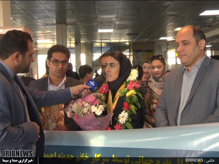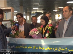 دختر دو ومیدانی کار اردبیلی که در مسابقات جهانی کارگری اسپانیا عنوان نایب قهرمانی جهان را از آن خودکرده بود , در بازگشت از این مسابقات در فرودگاه اردبیل مورد استقبال گرم قرار گرفت.