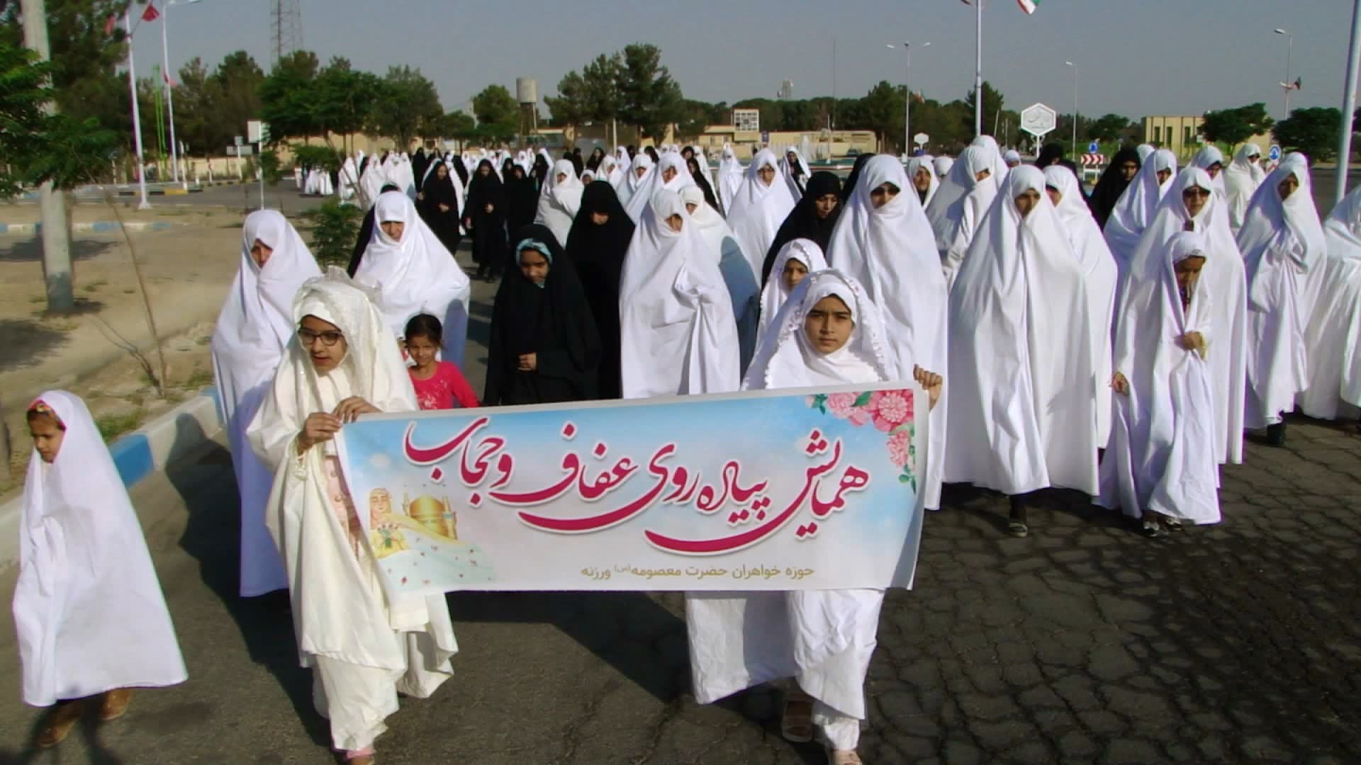 به مناسبت روز عفاف و حجاب، همایش پیاده روی بانوان چادر سفید در شهر ورزنه برگزار شد.