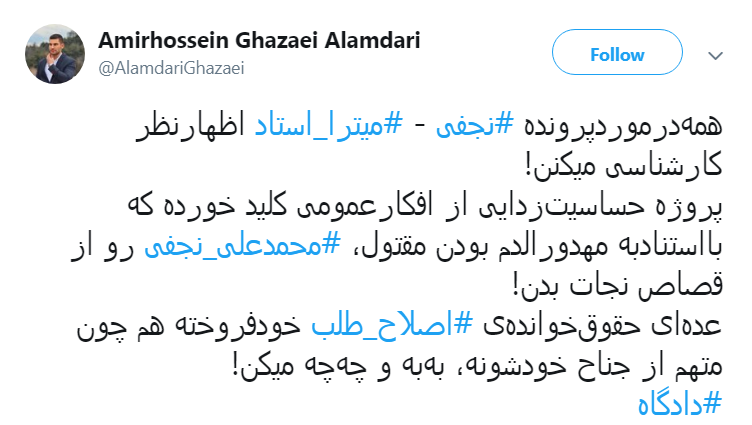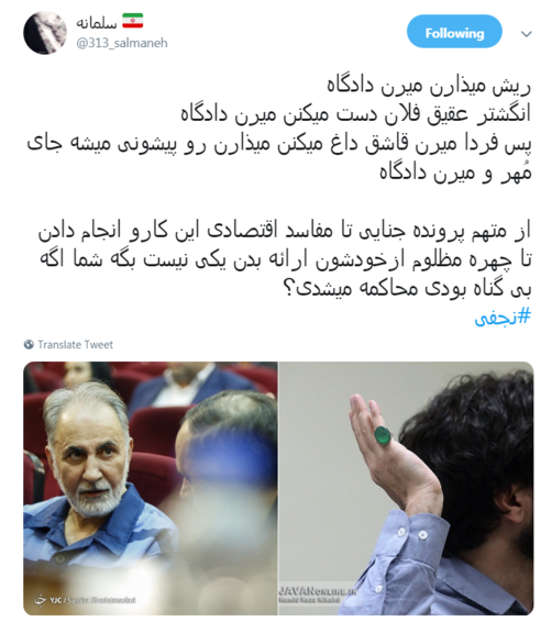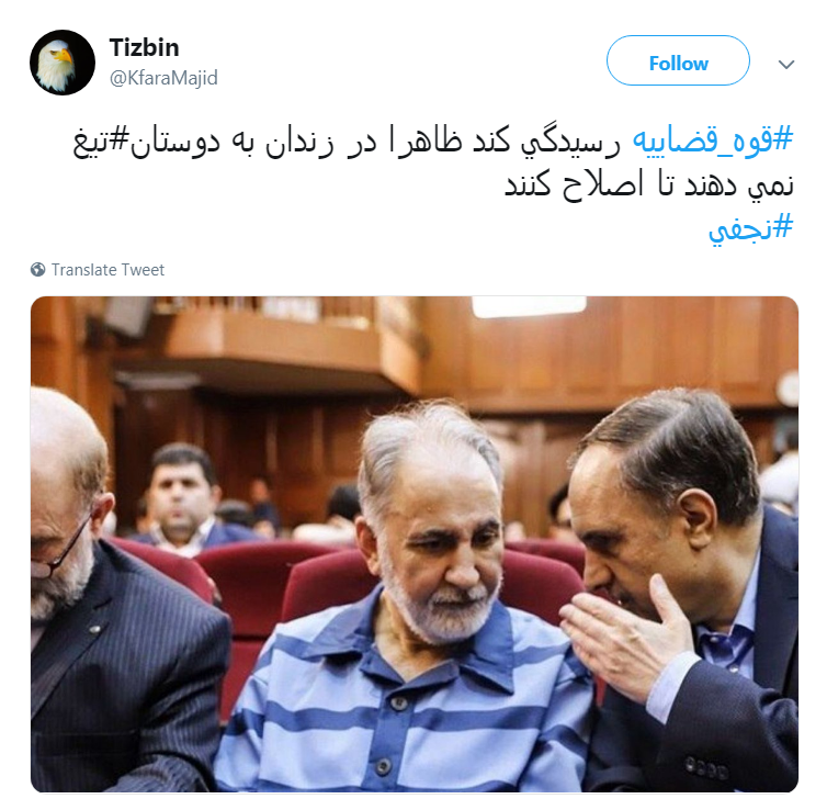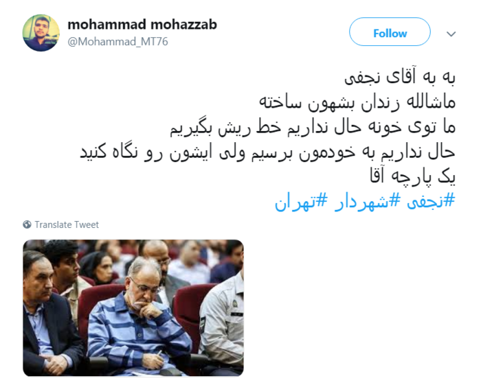 گذاشتن ريش براي زندانيان باعث شد کاربران فضای مجازی همزمان با پایان اولین جلسه محاکمه شهردار اسبق تهران، هشتگ #نجفی را داغ کردند.