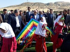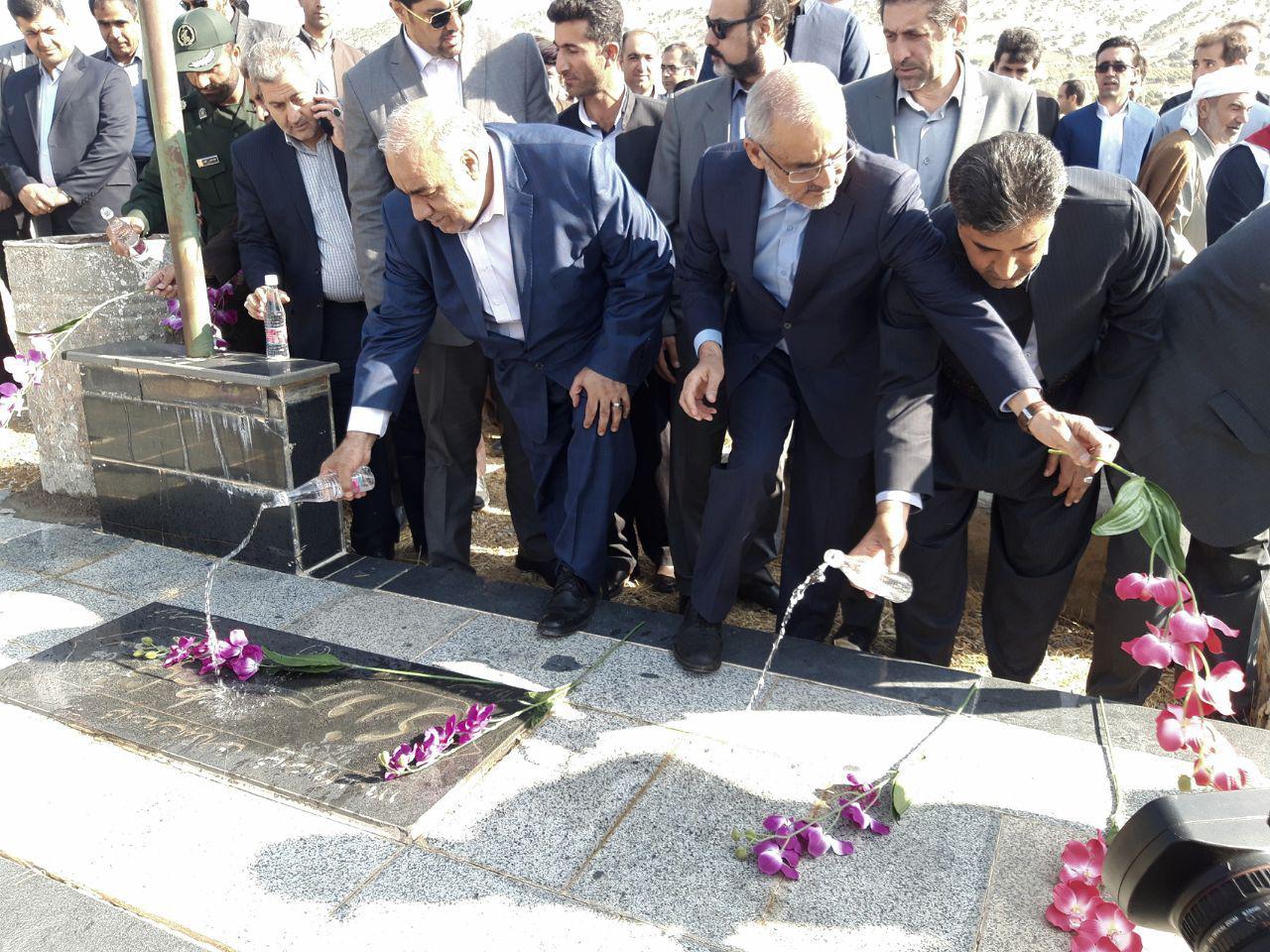 وی در ابتدای سفرش به مزار شهدای ثلاث باباجانی رفت و به مقام شامخ این شهیدان ادای احترام کرد و پس از آن در جمع دانش آموزان این شهرستان حاضر شد و در مراسم به پرواز درآوردن بادبادکها شرکت کرد.