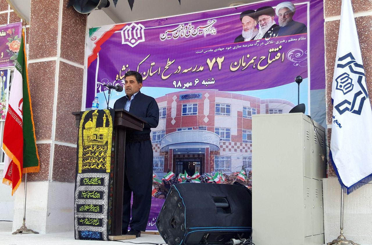 به گفته وی آبان سال ۹۶ بعد از وقوع زلزله، ۷۸ مدرسه با ۴۱۵ کلاس آسیب دیده بود، اما با مشارکت خیران، بانکها، نهادها و موسسات ساخت بیش از ۱۹۰ پروژه در استان بعد از زلزله آغاز شد.