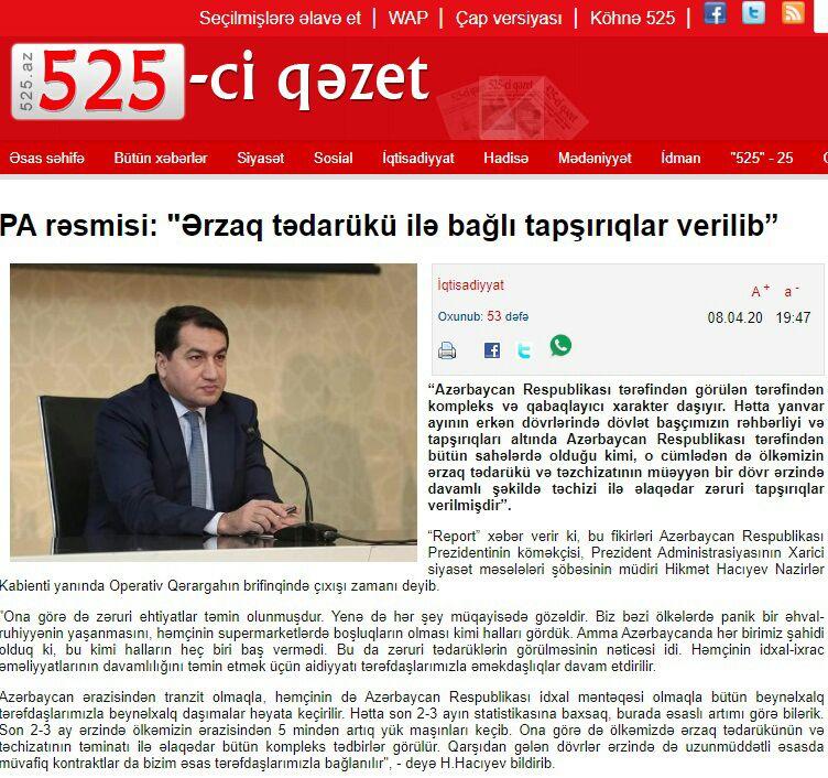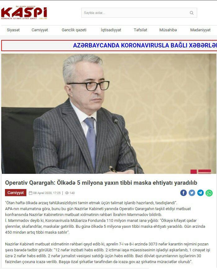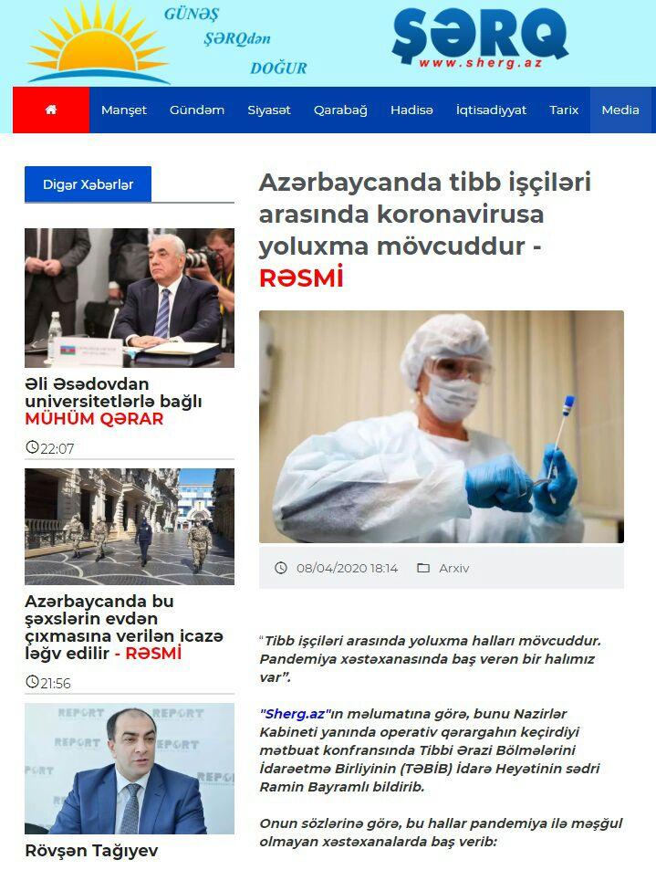 - وزیر بهداشت ارمنستان: پزشکان و پرستاران کشور یک ماه است که جانفشانی می‌کنند. ما باید در برابر آنان مسئول باشیم.