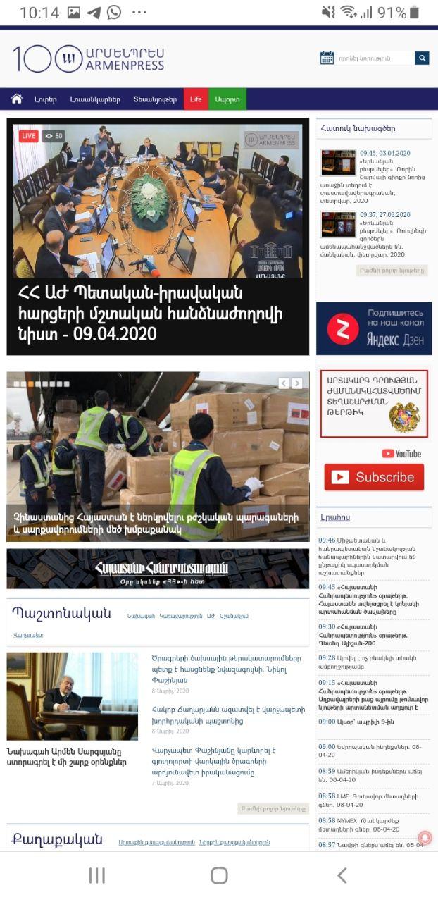 - رئیس جمهور چین: چین از تلاش‌های ارمنستان برای مقابله با ویروس کرونا حمایت می‌کند.