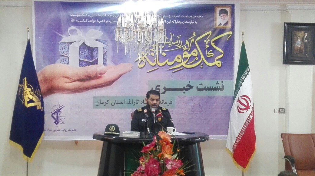 به گزارش خبر گزاری صداوسیما مر کز کرمان فرمانده سپاه ثارالله استان کرمان امروز در جمع خبرنگاران هدف از برگزاری این رزمایش را کمک به نیازمندان در ماه مبارک رمضان و نیازمندانی که در پی شیوع ویروس کرونا آسیب اقتصادی دیده اند.اجرای رزمایش کمک مومنانه در استان کرمان