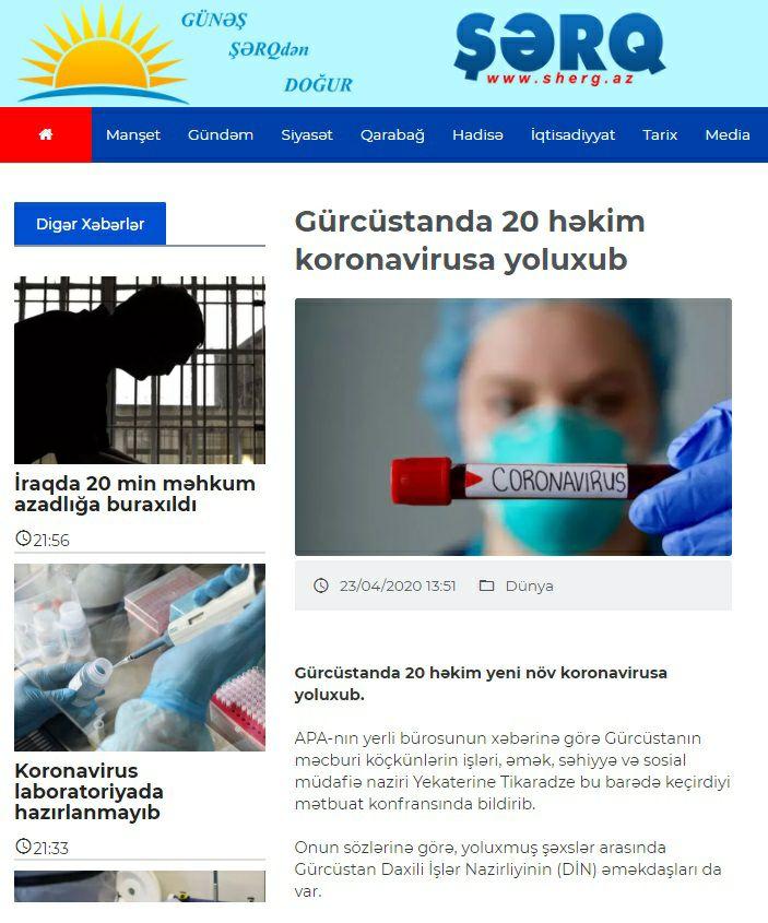 - در گرجستان ۲۰ پزشک به کرونا مبتلا شده است.