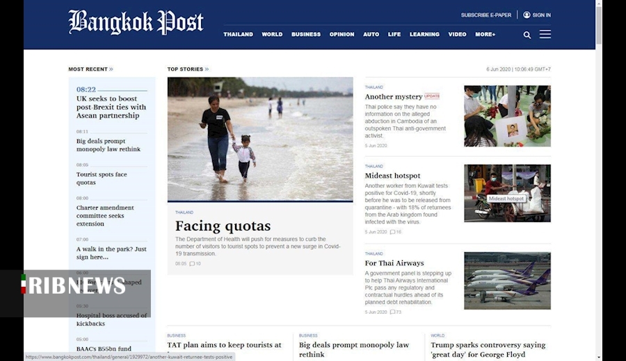 - وزارت بهداشت تایلند در مناطق گردشگری مهم این کشور با تعیین محدودیت تعداد گردشگر از گسترش احتمالی کرونا جلوگیری میکند.