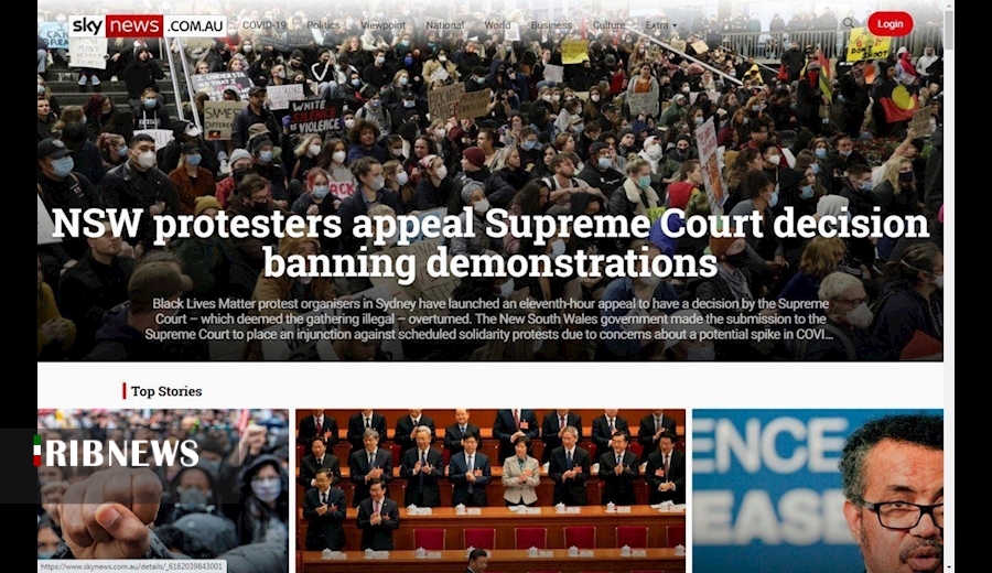 - دادگاه استرالیا برگزاری هر گونه راهپیمائی و تجمع را در سیدنی به علت مقررات قرنطینه ممنوع اعلام کرد.