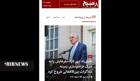 - زلمی خلیل زاد نماینده آمریکا در امور افغانستان دور تازهای از سفرهای خود را برای فراهم سازی زمینه مذاکرات میان افغانها آغاز کرد.