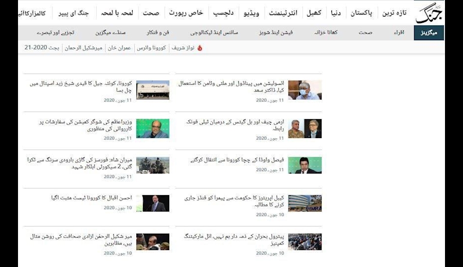 مهمترین عناوین خبرگزاری‌های پنجشنبه ۱۱ ژوئن ۲۰۲۰ پاکستان