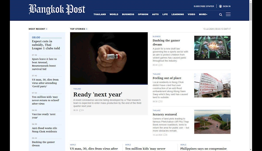 // بانکوک پست:- تایلند در ماه نوامبر با ساخت حدود ده هزار واکسن کرونا قرار است این واکسن را روی انسان آزمایش کند.
