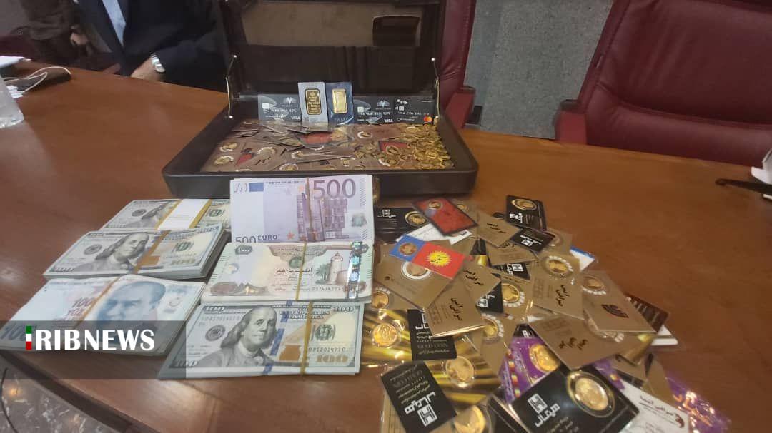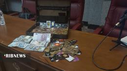 کیف حاوی سکه و ارزهای کشف شده از متهمان پرونده
