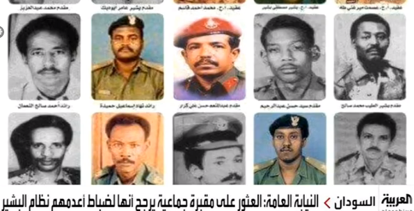به گزارش سرویس بین الملل خبرگزاری صدا و سیما به نقل از العربیه، در بیانیهای که دادستانی کل سودان صادر کرد آمده است، این گور حاوی بقایای اجساد بیست و هشت افسر ارتش است که در سال ۱۹۹۰ به اتهام توطئه برای کودتا علیه عمر البشیر، رئیس جمهور مخلوع کشور، اعدام شده بودند.