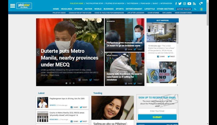 - رییس جمهور فیلیپین از اعمال قرنطینه کامل دو هفته‌ای پایتخت و چند شهر بزرگ این کشور به علت افزایش صعودی تعداد مبتلایان به کرونا از فردا به مدت دو هفته خبر داد.