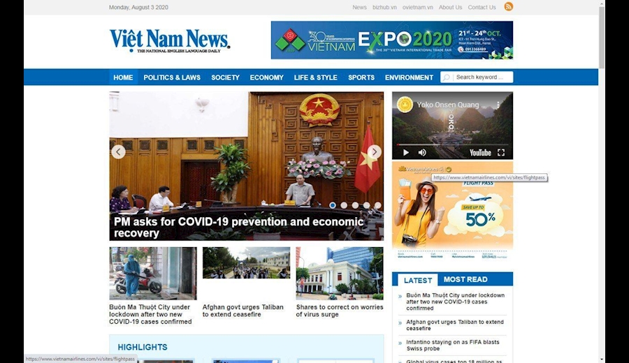 - نخست وزیر ویتنام از همه وزارتخانه‌ها خواست بر رعایت اصول درمانی در پیشگیری از گسترش کرونا اهتمام ورزند.