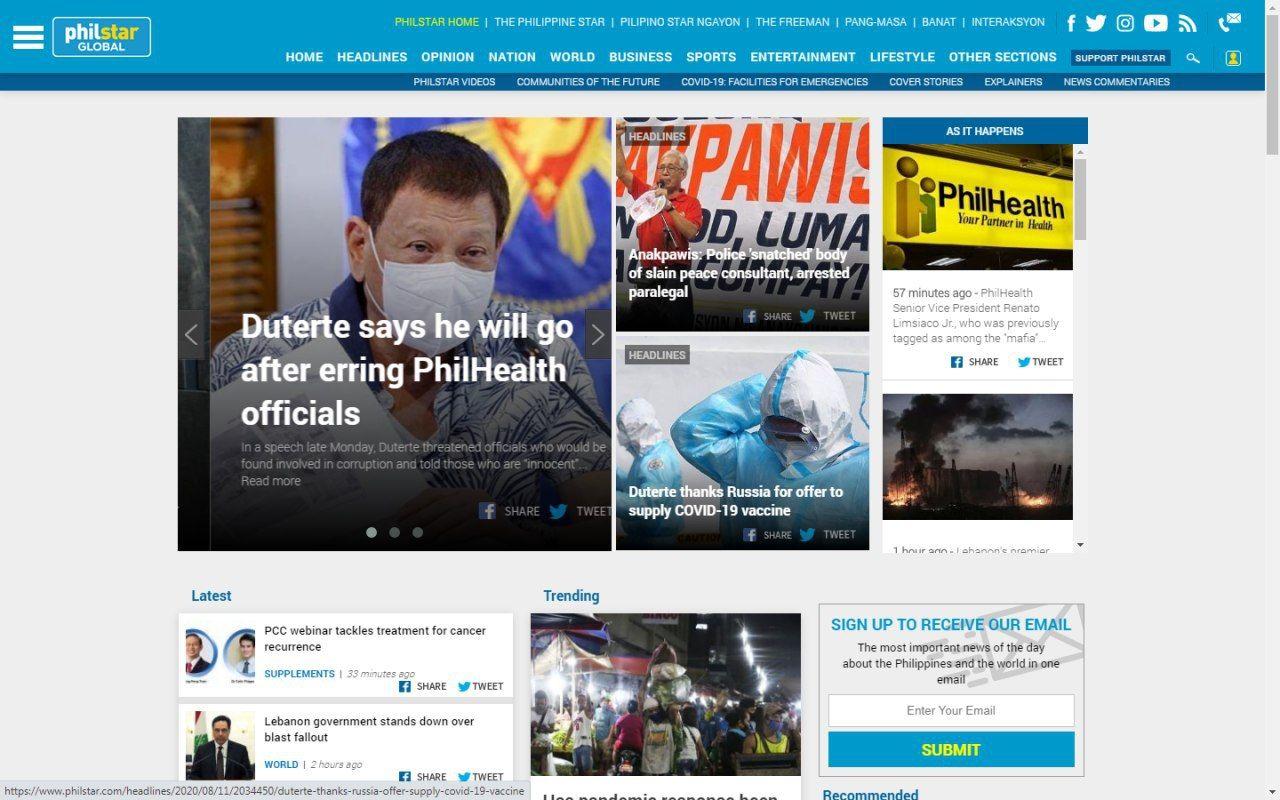 - رئیس جمهور فیلیپین از رئیس جمهور روسیه برای ارسال واکسن کرونای رایگان به کشورش قدردانی کرد.