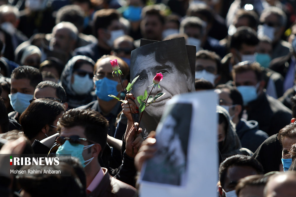 به گزارش گروه عکس خبرگزاری صدا وسیما پیکر استاد شجریان با حضور خانواده، جمعی از مردم و برخی از مسئولان فرهنگی در خانه ابدی آرام گرفت.این در حالی است که محل حفر شده پیشین برای دفن پیکر مرحوم شجریان نیز که در کنار مقبره شاعر همشهری وی "مهدی اخوانثالث" قرار داشت، نامناسب تشخیص داده شد و صبح امروز محل جدیدی با فاصله حدود ۲۰متر از محل قبلی و نزدیکتر به آرامگاه فردوسی حفر شد.مراسم خاکسپاری پیکر استاد شجریان، امروز شنبه ۱۹ مهرماه حدود ساعت ۸ صبح با حضور جمعی از مردم وخانواده استاد در آرامگاه فردوسی آغاز شده بود.