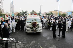 پیکر مطهر شهید دکتر عبدالرسول نائبی پزشک مدافع سلامت امروز پنج شنبه ۶ آذر ماه، با حضور مسئولان بهداشت و درمان استان، پزشکان و پرستاران و همکاران وی، در محوطه بیمارستان عالی نسب تبریز تشییع شد