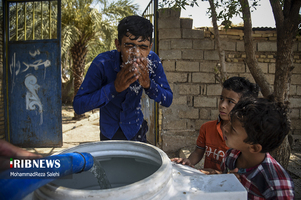 به گزارش گروه عکس خبرگزاری صداوسیما :  مردم خوزستان در کنار ارتش در دوران دفاع مقدس ایستادگی کرده و مقابل دشمن ایثارگری کردند و اکنون در شرایط سخت و تنش آبی ارتش نیز با تمام وجود تا رفع مشکلات آبی در این منطقه خدمت رسانی خواهد کرد روزانه ۱۷۰ هزار لیتر و در مجموع در یک هفته یک میلیون و ۱۹۰ هزار لیتر آب شرب در این مناطق توزیع می شود.یک تانکر ۱۵ هزار لیتری و هفت تانکر ۱۰ هزار لیتری به مدت یک هفته در روستاهای بستان برای اهالی، دام و احشام روستائیان آبرسانی می کنند.