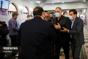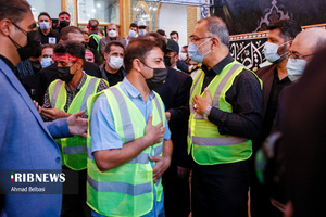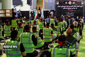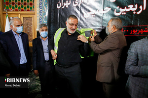 مراسم اعزام خدام الحسین (ع) ۳۰۰ نفر از پاکبانان شهرداری تهران برای خدمترسانی به زائران اربعین با حضور علیرضا زاکانی شهردار تهران، جمعی از معاونان و مدیران شهری شهرداری و اعضای شورای شهر تهران در مصلی حرم حضرت عبدالعظیم الحسنی (ع) برگزار شد.
