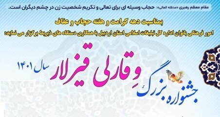 جشنواره «وقارلی قیزلار» در اردبیل برگزار شدبه گزارش خبرگزاری صداوسیمای مرکز اردبیل امیر صادقی در همایش "وقارلی قیزلار" (دختران باوقار) گرامیداشت هفته حجاب و عفاف در اردبیل اظهار کرد: انتظار می‌رود خانواده‌ها با ترغیب فرزندان دختر خود به مساله حجاب نسبت به گسترش آن همت کنند.