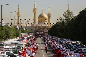 صبح امروز کاروان امدادی و درمانی جمعیت هلال احمر با رژه ناوگان خودرویی این جمعیت در محوطه حرم امام خمینی(ره)، بدرقه شد تا ۲۲ هزار امدادگر هلال احمر کشورمان عازم مرزهای غربی، جادههای عراق و شهرهای نجف و کربلا شوند. به گفته رئیس جمعیت هلال احمر در اربعین امسال ۱۳۳۱ پست و مرکز امدادی این جمعیت در خاک ایران و عراق مشغول خدمتگذاری به زائران حسینی خواهد بود. این بزرگترین عملیات «سلامت در تجمعات انبوه» در بین ۱۹۲ جمعیت ملی عضو نهضت جهانی صلیب سرخ در دنیا است.