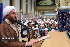 ائمهی جمعهی سراسر کشور صبح امروز سهشنبه ۲۶ دی ماه ۱۴۰۲ با حضور در حسینیهی امام خمینی (ره) با حضرت آیتالله خامنهای دیدار کردند. رهبر معظم انقلاب اسلامی امامت جمعه را جزو سختترین کارها دانستند؛ چرا که امامِ فریضه الهی نماز جمعه، هم باید به حضرت حق متوجه باشد و رضایت او را هدف قرار دهد و هم منافع مردم و رضایت آنان را در نظر بگیرد. پیش از بیانات رهبر انقلاب، حجتالاسلام حاج علیاکبری رئیس شورای سیاستگذاری ائمه جمعه به بیان گزارشی از بیست و ششمین اجلاس ائمه سراسر کشور با حضور قریب به ۹۰۰ امام جمعه پرداختند.