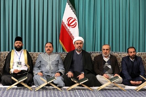 اساتید، قاریان و حافظان برترِ شرکتکننده در چهلمین دورهی مسابقات بینالمللی قرآن کریم جمهوری اسلامی ایران، صبح امروز پنجشنبه سوم اسفند ماه ۱۴۰۲ با حضور در محفل انس با قرآن در حسینیهی امام خمینی (ره) با رهبر انقلاب اسلامی دیدار کردند.