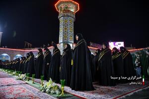 آیین سنتی شمع گردانی خادمان حرم مطهر بانوی کرامت، همزمان با شام شهادت حضرت فاطمه معصومه (س) در صحن امام رضا (ع) حرم مطهر برگزار شد.