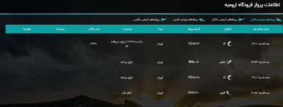 برنامه پرواز‌های فرودگاه بین المللی ارومیه در اول آبان