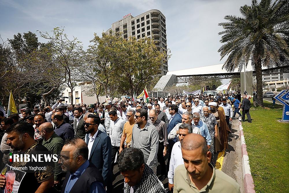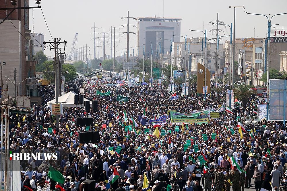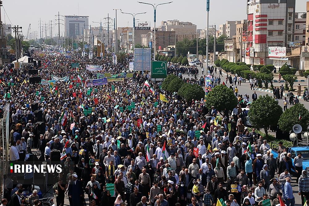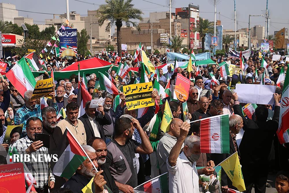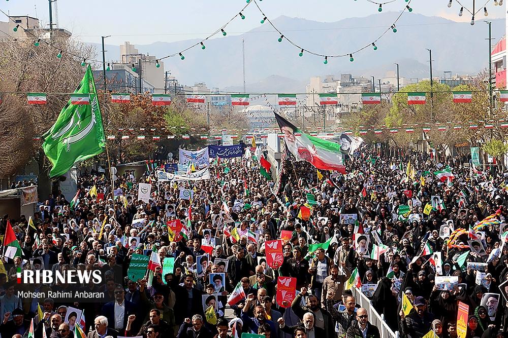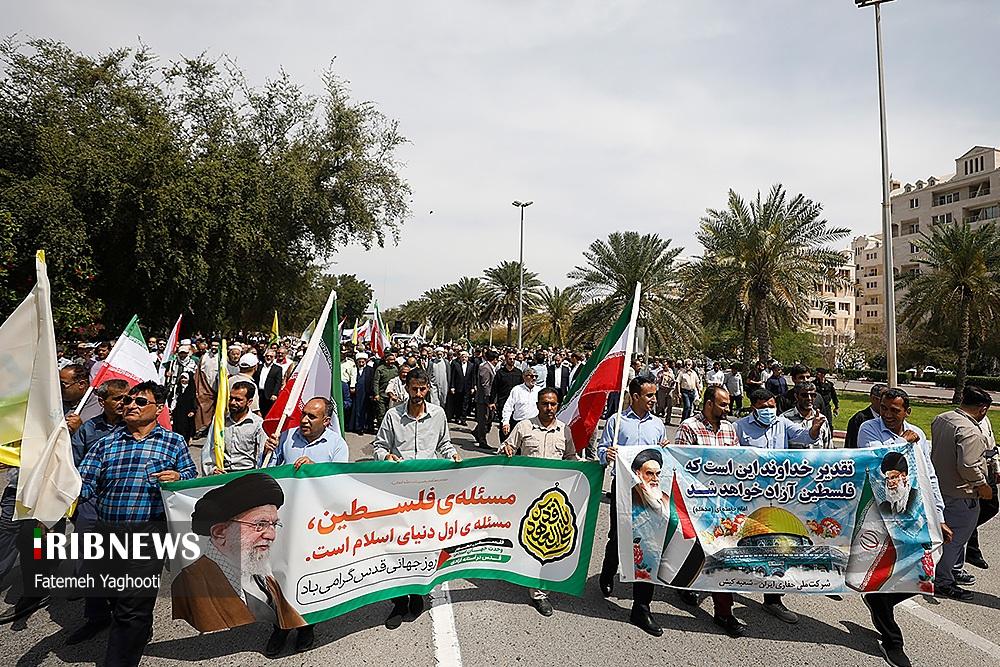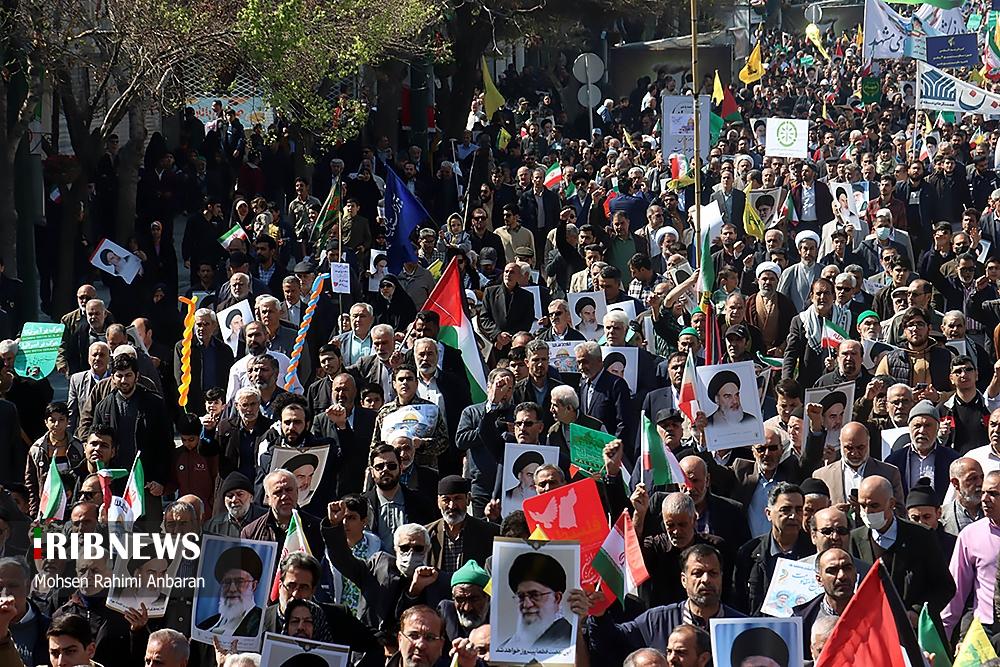 صبح امروز ۸ فروردین ماه ۱۴۰۴ راهپیمایی روز جهانی قدس، با شعار «علی العهد یا قدس» با حضور همه اقشار مردم در صد‌ها نقطه کشور، از جمله در شهر مقدس مشهد در استان خراسان رضوی و اهواز در استان خوزستان و همچنین در جزیره کیش برگزار شد. راهپیمایی روز جهانی قدس تجلی همبستگی جهانی با مردم مظلوم فلسطین و اعتراض به تضییع حقوق بشر در سرزمین‌های اشغالی است.