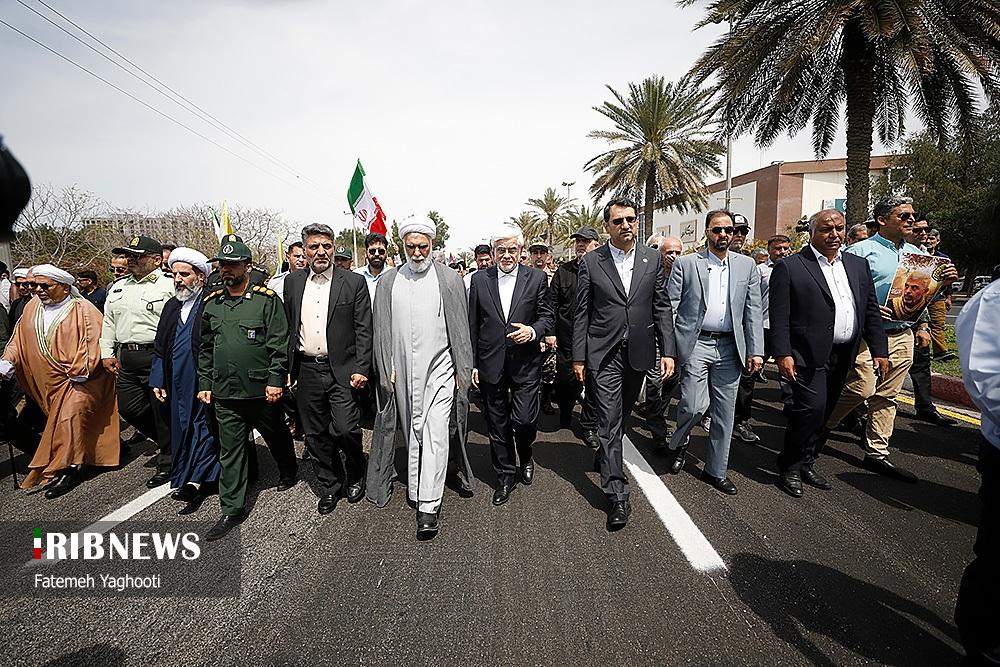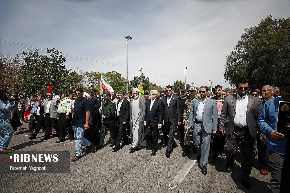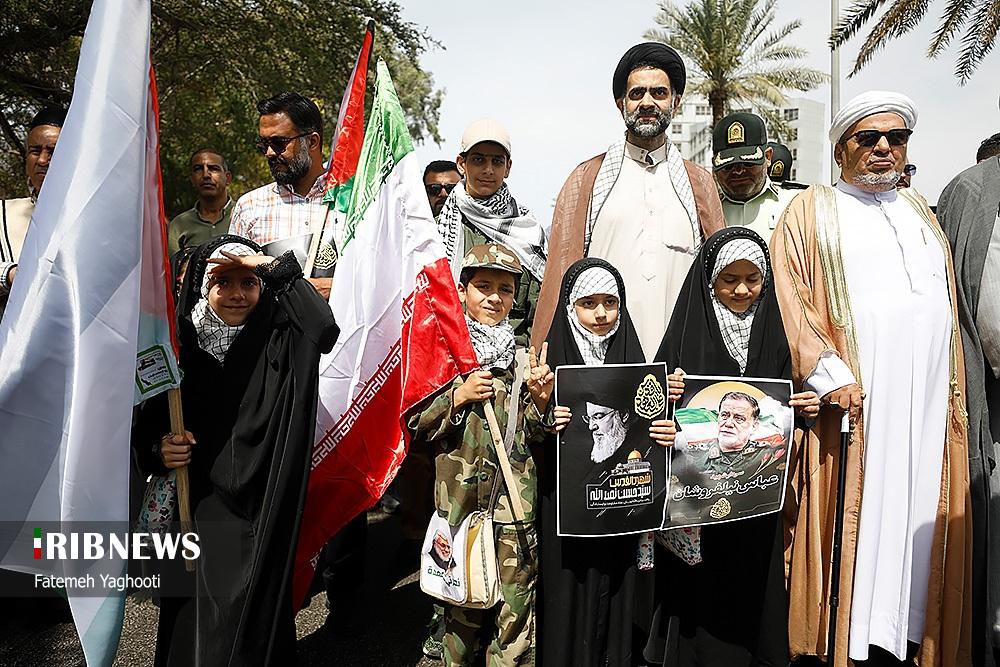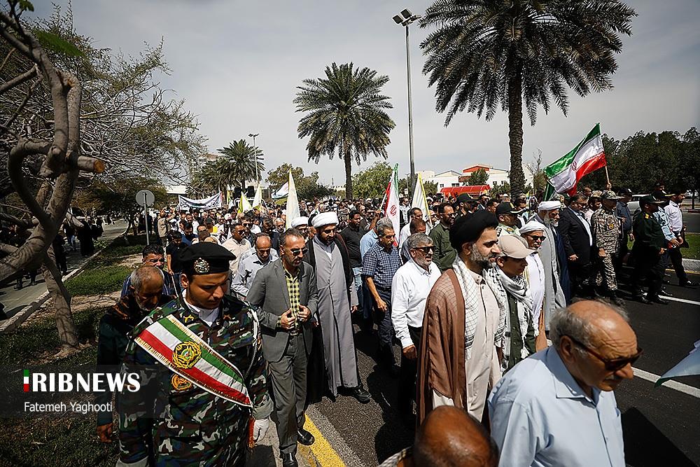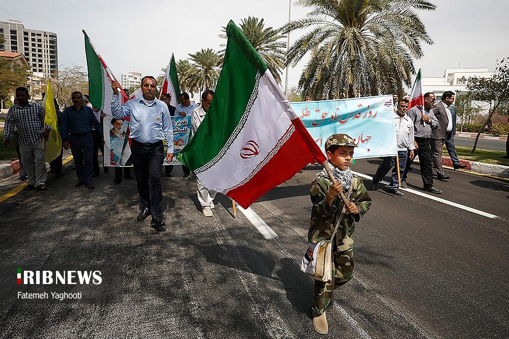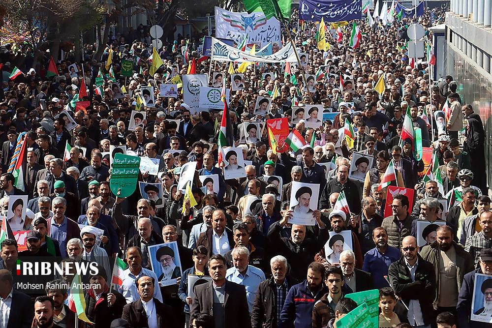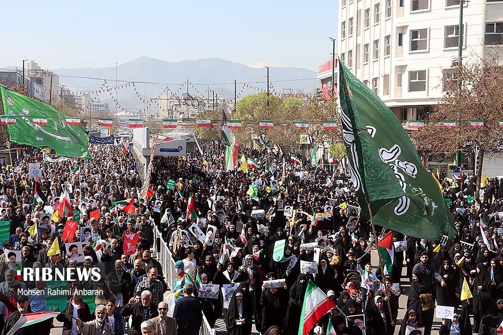 صبح امروز ۸ فروردین ماه ۱۴۰۴ راهپیمایی روز جهانی قدس، با شعار «علی العهد یا قدس» با حضور همه اقشار مردم در صد‌ها نقطه کشور، از جمله در شهر مقدس مشهد در استان خراسان رضوی و اهواز در استان خوزستان و همچنین در جزیره کیش برگزار شد. راهپیمایی روز جهانی قدس تجلی همبستگی جهانی با مردم مظلوم فلسطین و اعتراض به تضییع حقوق بشر در سرزمین‌های اشغالی است.