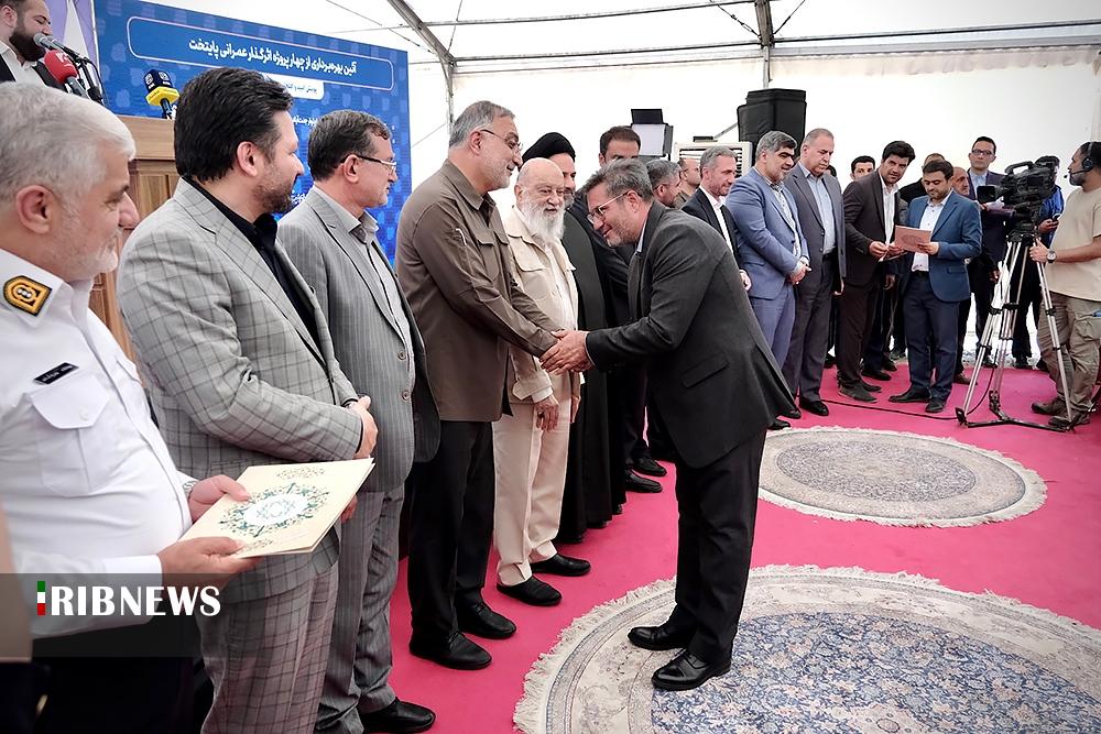 آئین بهره برداری از ۴ پروژه اثرگذار عمرانی پایتخت (محدوده غرب تهران) در قالب یکصد و هشتاد و هفتمین پویش امید و افتخار، عصر امروز چهارشنبه ۱۲ شهریور ۱۴۰۴ با حضور علیرضا زاکانی شهردار تهران، جمعی از مدیران شهری و برخی اعضای شورای اسلامی شهر تهران برگزار شد.